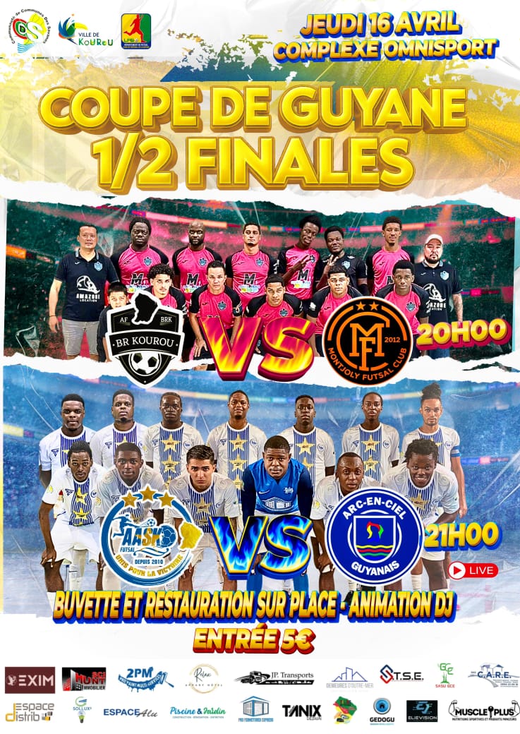 Rendez-vous jeudi 16 avril au Complexe Omnisport de Kourou pour une grande soirĂ©e de futsal Ă ne surtout pas manquer ! âœđ„