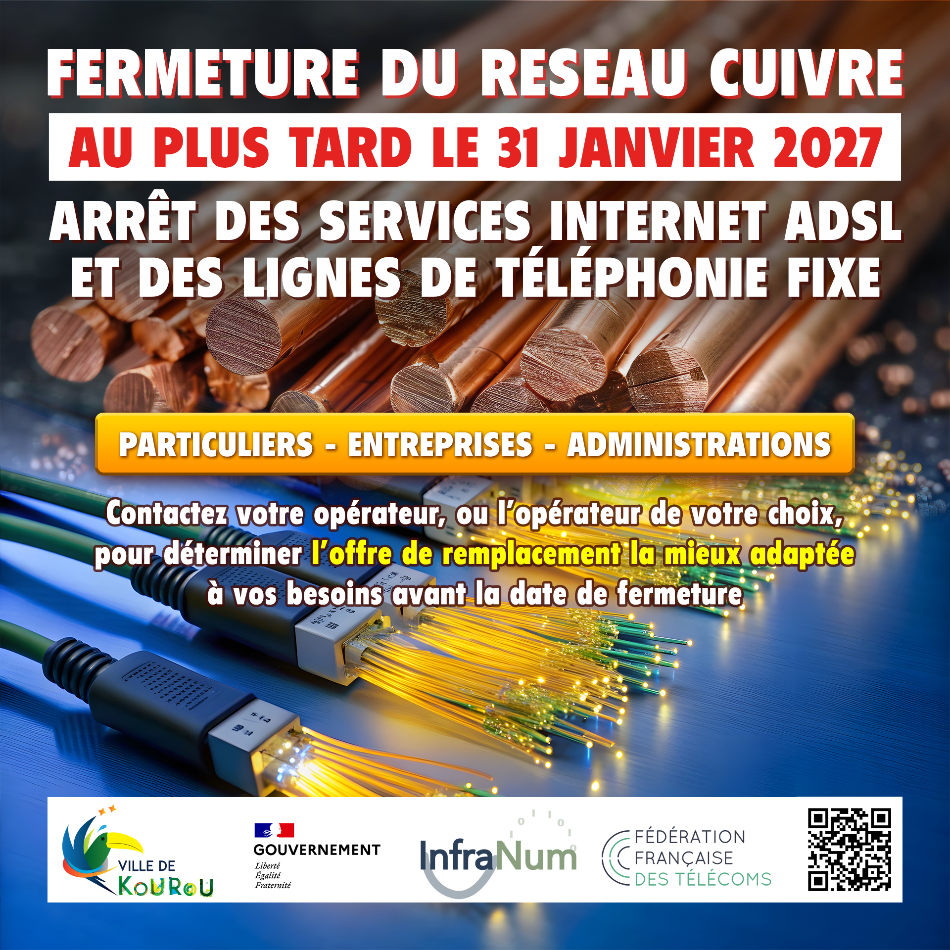 La commune de Kourou est concernée par la fermeture du réseau cuivre au plus tard le 31 janvier 2027.