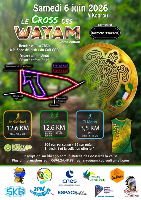 La Ville de Kourou accueillera, le samedi 6 juin 2026, la deuxième édition du très attendu Cross des Wayam, un événement sportif et convivial organisé par le Cryo Team. Après le succès de la première édition, cette nouvelle rencontre promet une expérience encore plus dynamique au cœur de la nature guyanaise.